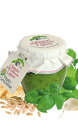Genoese Basil D.O.P. 39%, Extra virgin olive oil, cheese Parmigiano Reggiano D.O.P. (milk, salt, rennet), walnuts, cheese Pecorino Romano D.O.P. (sheep’s milk, salt, rennet), pine nuts, salt, antioxidant: ascorbic acid, acidity regulator: citric acid, preservative: sorbic acid.